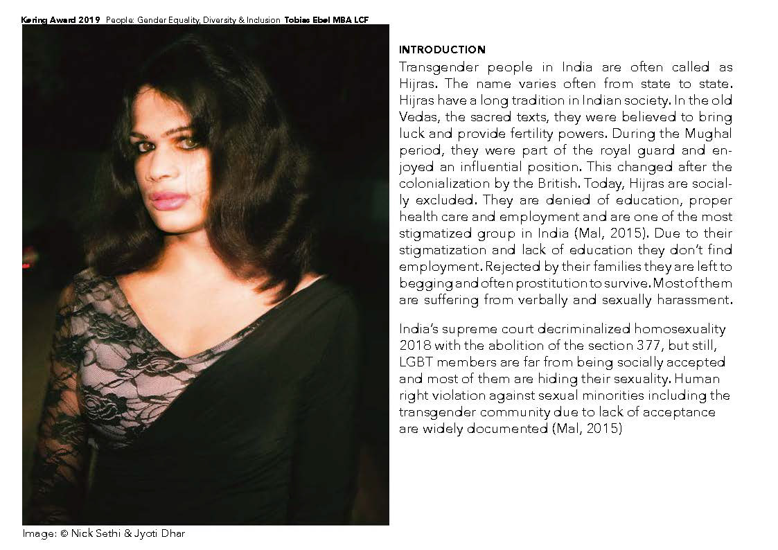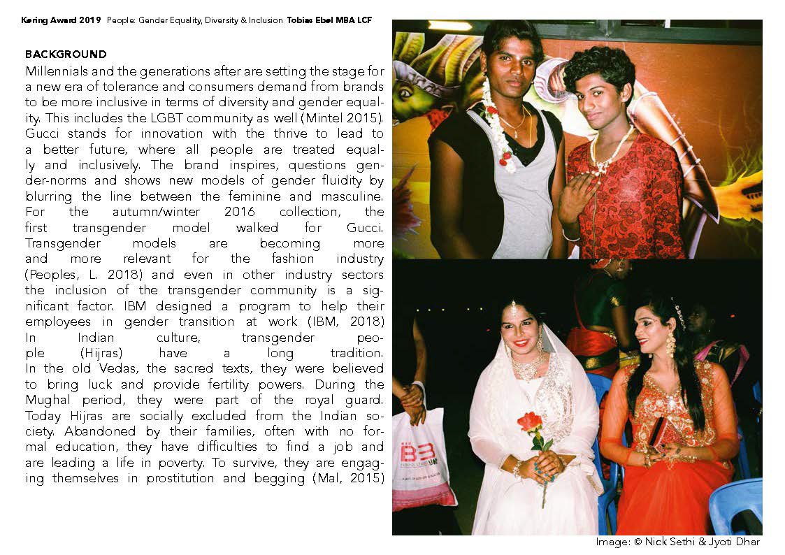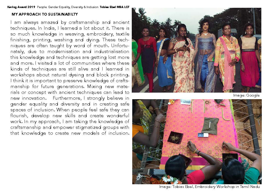 Finalist of the Kering Award 2019 for sustainable fashion in collaboration with Gucci for the brief: ‘Equality, Diversity and Inclusion’. Supervisor: Dr. Francesco Mazzarella